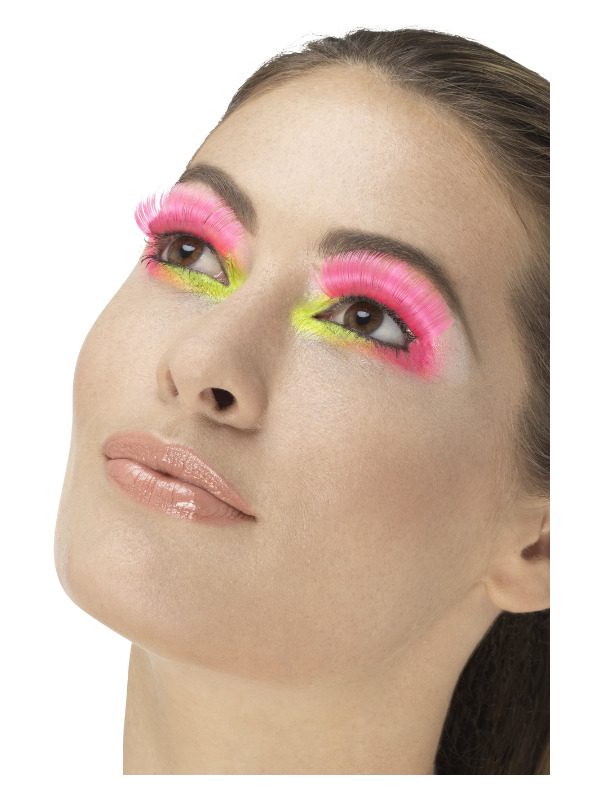 80s Party Eyelashes, Neon Pink, Contains Glue