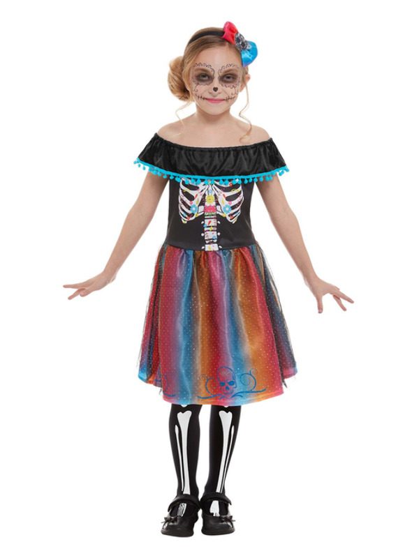 Day of The Dead Girl Costume, Multi-Coloured, with Dress & Headband