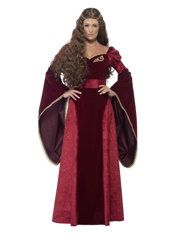 Deluxe Medieval Queen Costume, Red, with Dress, Belt & Headpiece