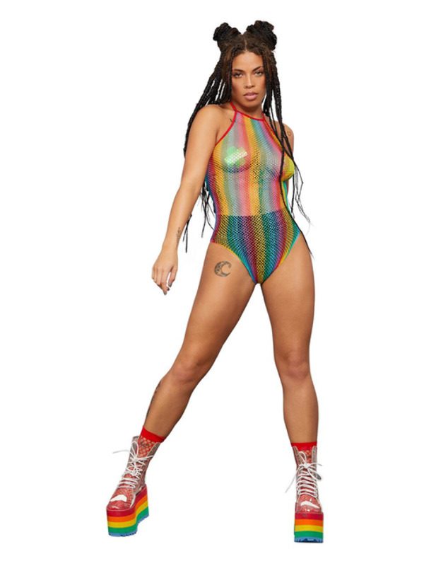 Fever Rainbow Fishnet Bodysuit, Halter Neck