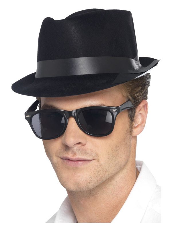 Flocked Fedora Hat, Black, Plastic