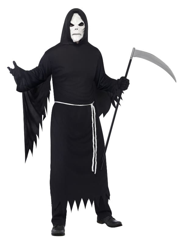 Grim Reaper Costume, Black, with Hooded Robe, Mask & Belt