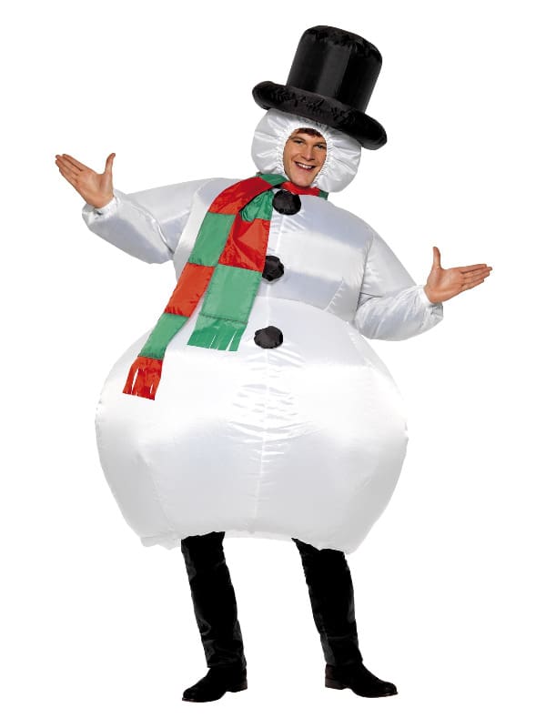 Inflatable Snowman Costume, White, with Bodysuit, Hat, Scarf & Self Inflating Fan