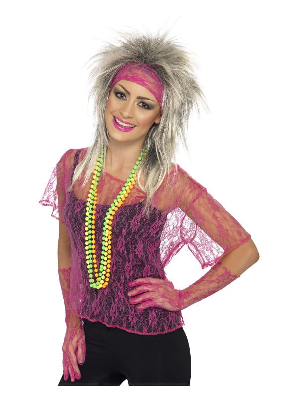 Lace Net Vest, Gloves & Headband, Neon Pink