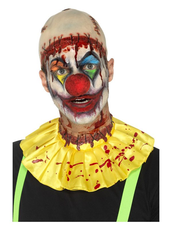 Latex Creepy Clown Instant Kit, Yellow, Bald Cap & Neck Ruffle with Slashed Neck Wound