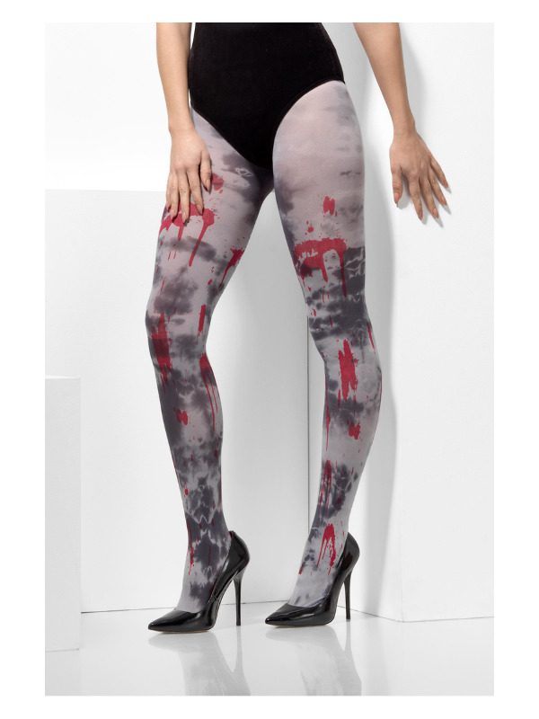 Opaque Tights, Zombie Dirt, Grey, with Blood Splatter