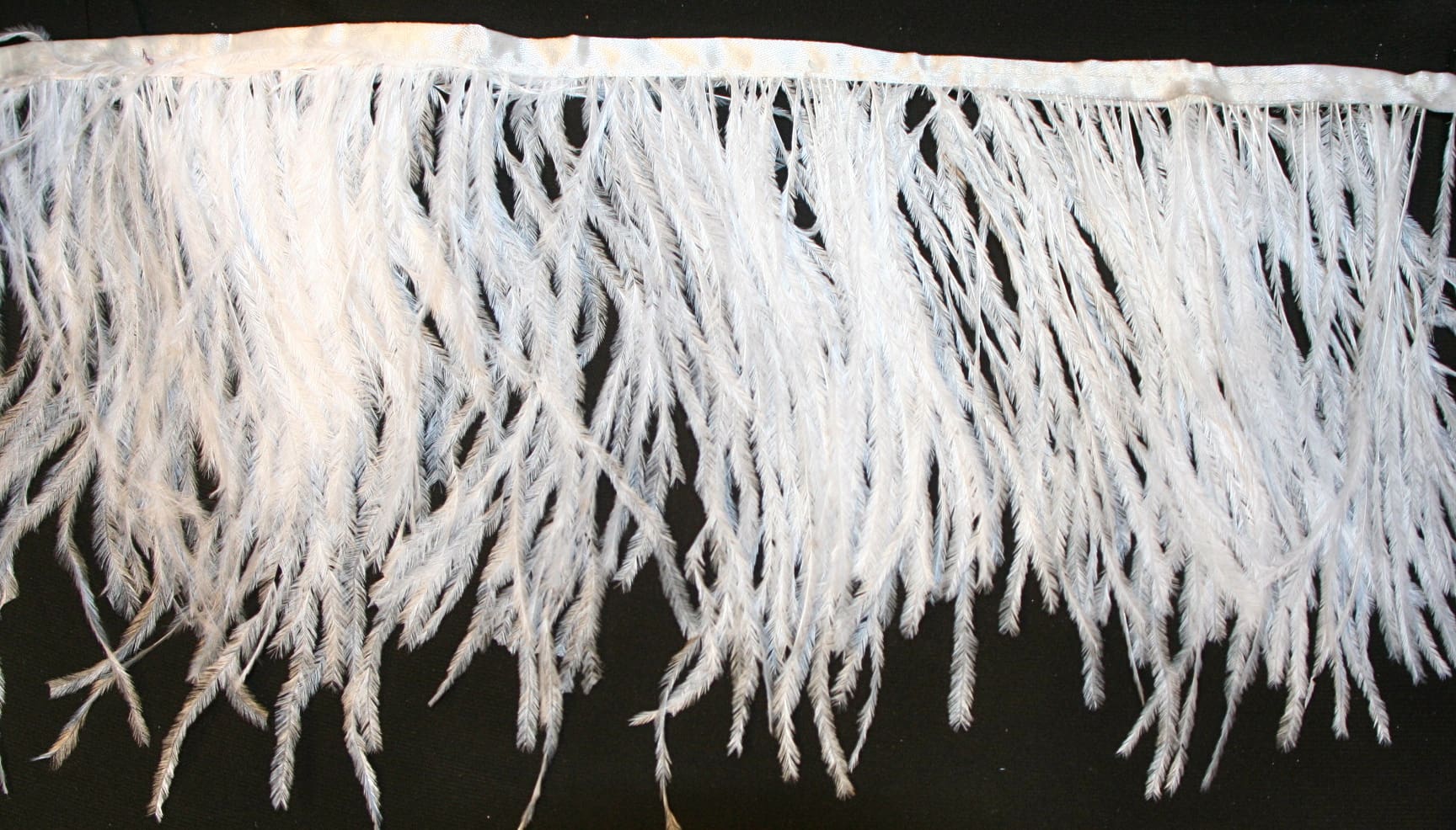 Ostrich feather fringe 13-15cm drop this is white. sold by the meter