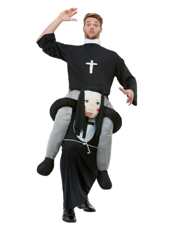 Piggyback Nun Costume, Black, with One Piece Suit & Mock Legs