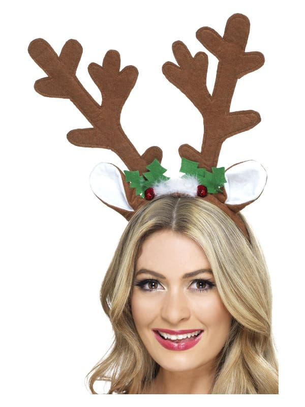 Reindeer Antlers, Brown, on Headband