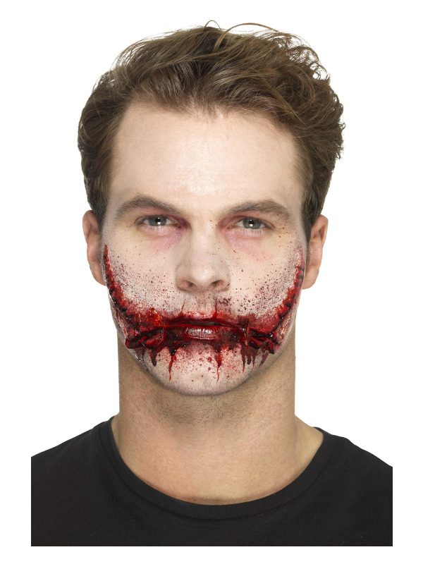 Smiffys Make-Up FX, Latex Stitched Smile Wounds, Red, with Adhesive